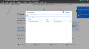 - Ở góc trên cùng bên trái, nhấp vào menu dự án (thường hiển thị tên dự án hiện tại hoặc “Select a project”).