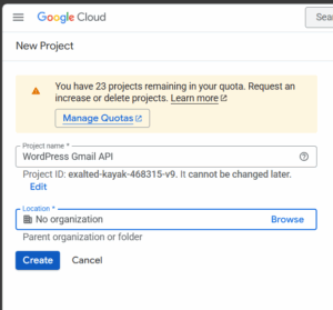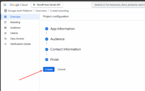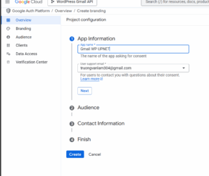 - Đặt tên dự án (ví dụ: “WordPress Gmail API”).