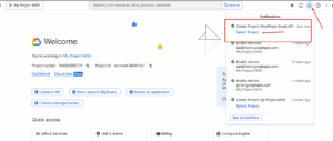 - Chọn dự án bạn đã tạo (ví dụ: “WordPress Gmail API”).