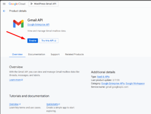 - Nhấn Enable để kích hoạt Gmail API cho dự án.