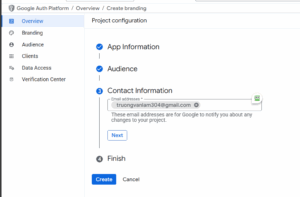 - Nếu được yêu cầu cấu hình OAuth Consent Screen: