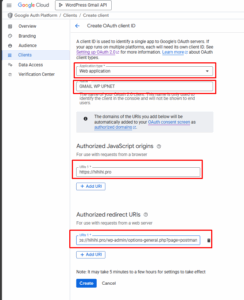 - Authorized redirect URIs: Thêm URI từ Post SMTP (xem Bước 2 để lấy URI này).