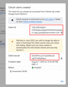 - Sao chép Client ID và Client Secret (lưu lại vì bạn sẽ cần chúng).