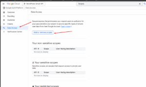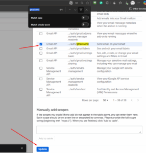 - Trong cửa sổ hiện ra, tìm scope cho Gmail: