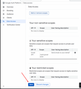 - Nếu bạn chỉ cần gửi email, chỉ chọn scope này để giảm yêu cầu quyền.