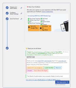 - Sau khi cấp quyền, Post SMTP sẽ tự lưu thông tin xác thực.